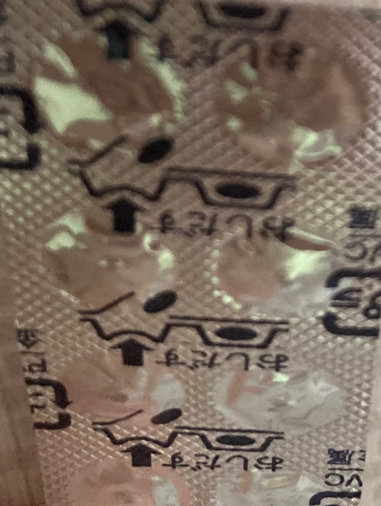 현재 사진상으로 일본어가 적혀 있어 일본에서 구매한 약 으로 보이며, 약품 식별이 불가합니다.