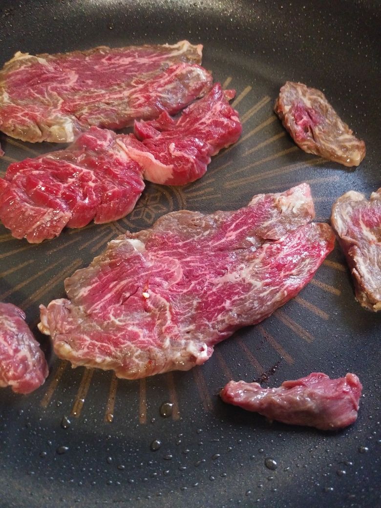 소고기 끼리 뭉쳐 있었는데요.