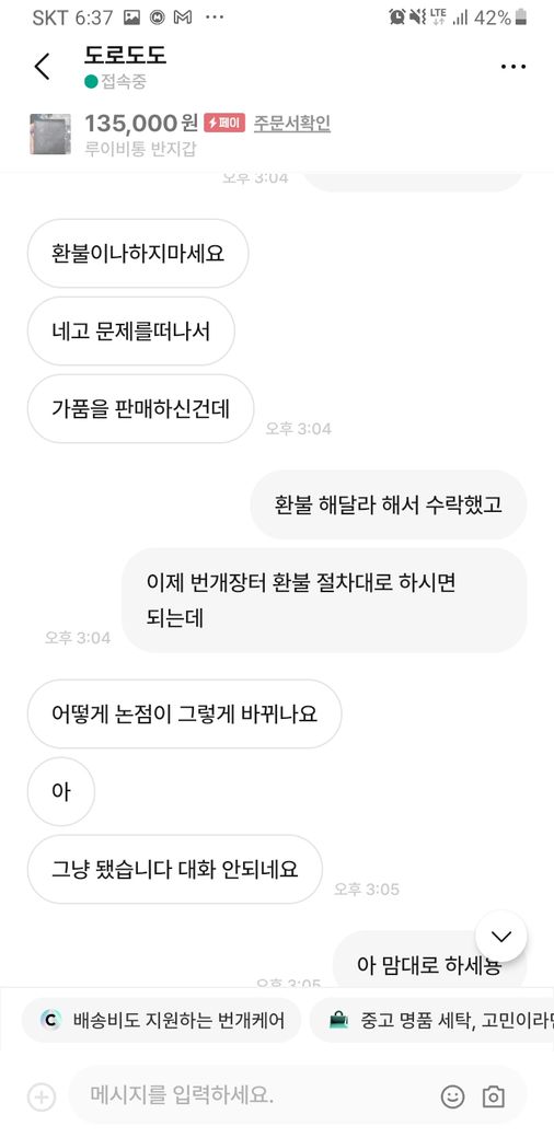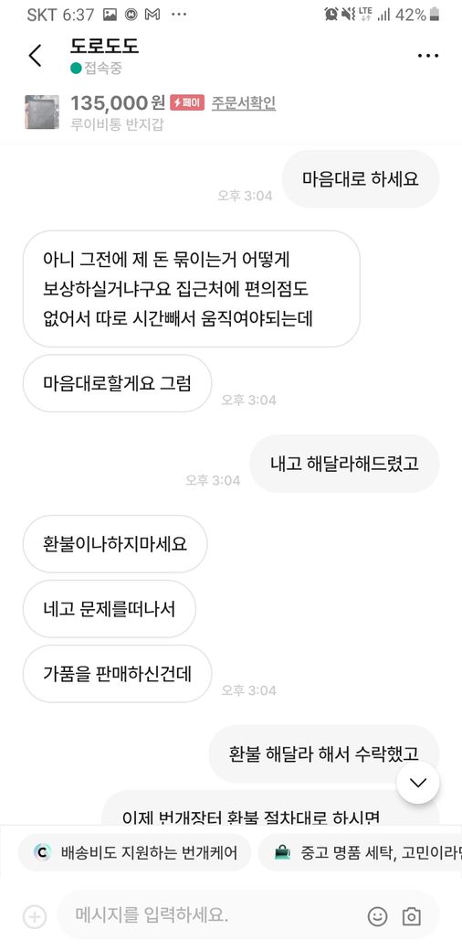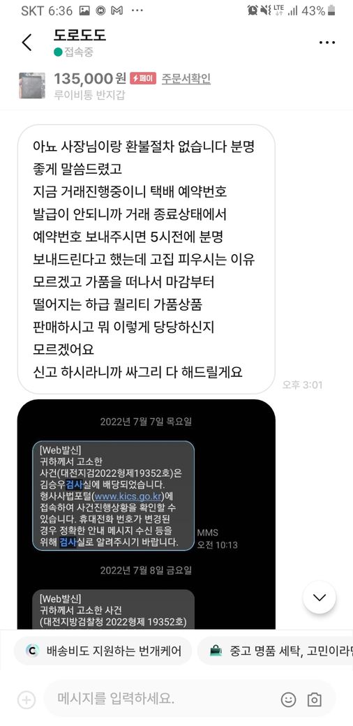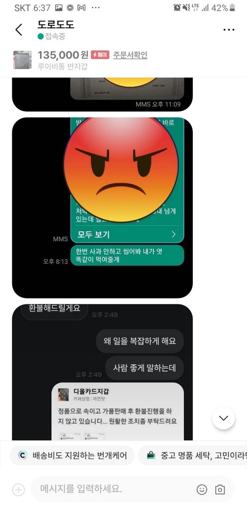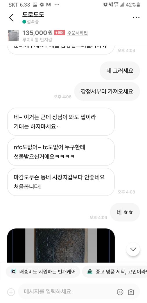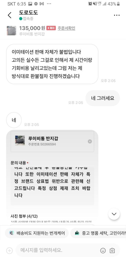 그러자 구매재분께서 가품을 알고팔던 모르고 팔던 불법이라 하시면서 자기 방식대로 하지 않으면 고소를 하신다고 하시던군요.