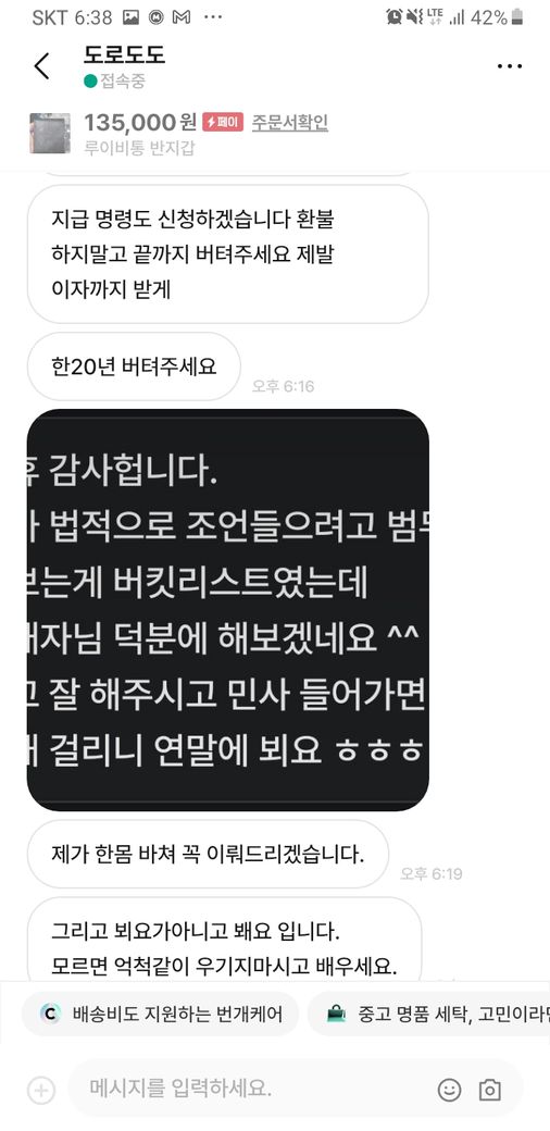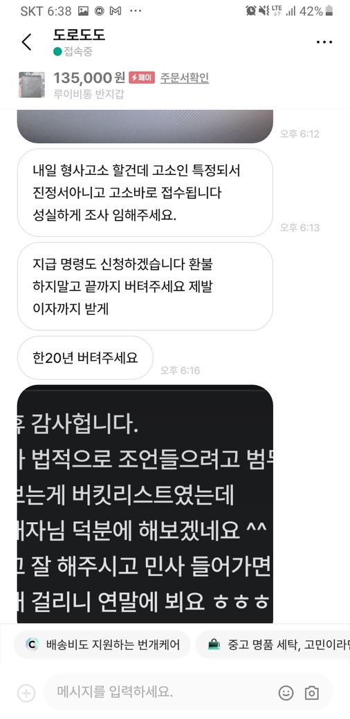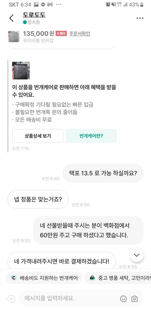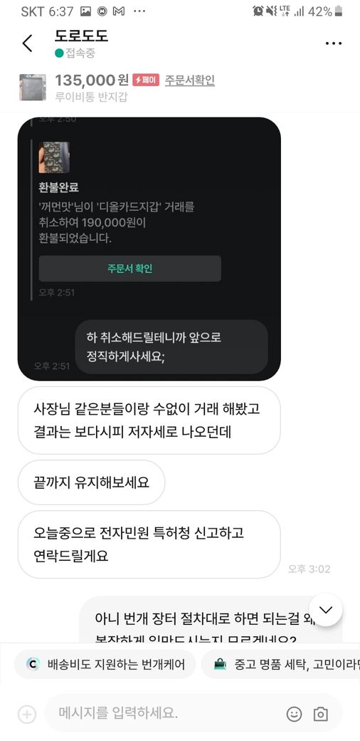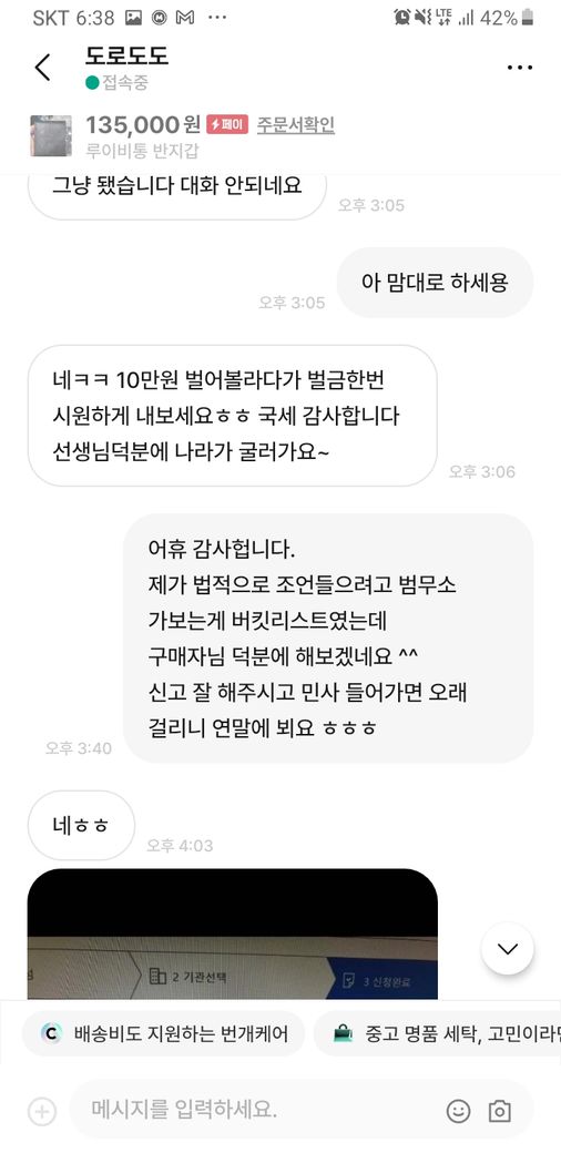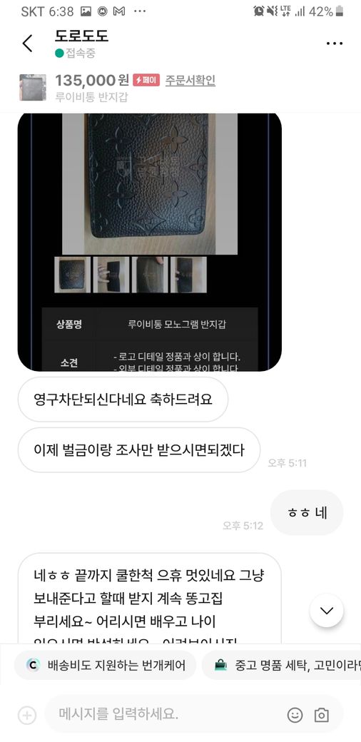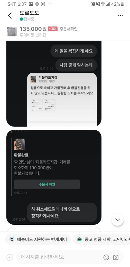 그러자 구매재분께서 가품을 알고팔던 모르고 팔던 불법이라 하시면서 자기 방식대로 하지 않으면 고소를 하신다고 하시던군요.