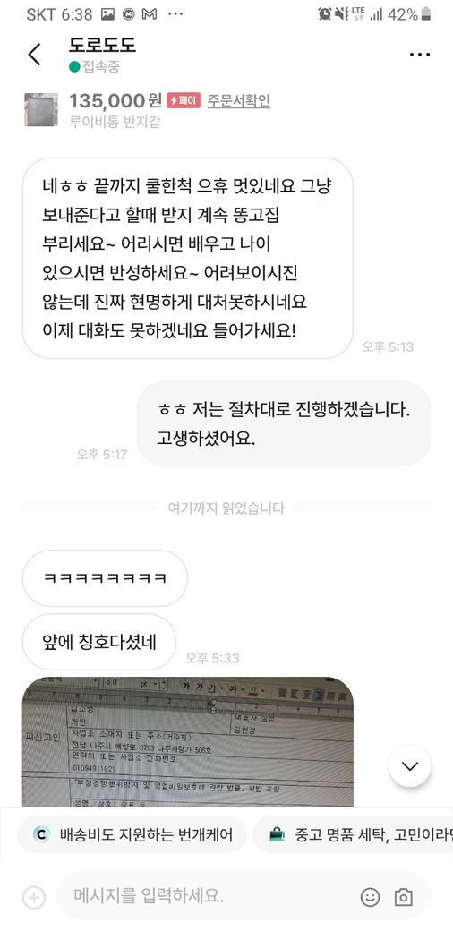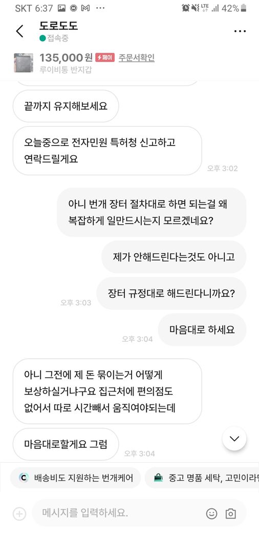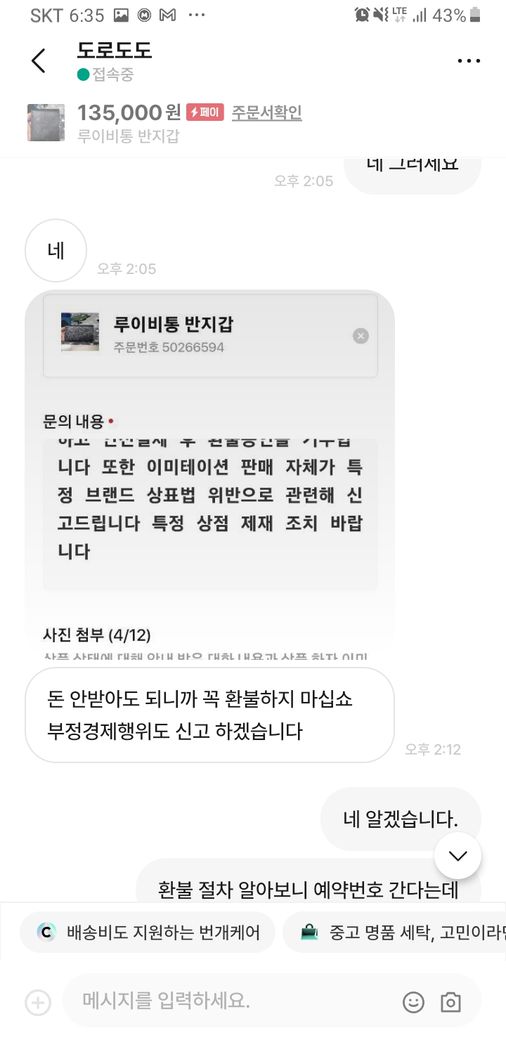 저는 의심스러워 플랫폼절차대로 한다고 신고 마으대로 하시라고 저의 의사를 전달 드렸는데요.