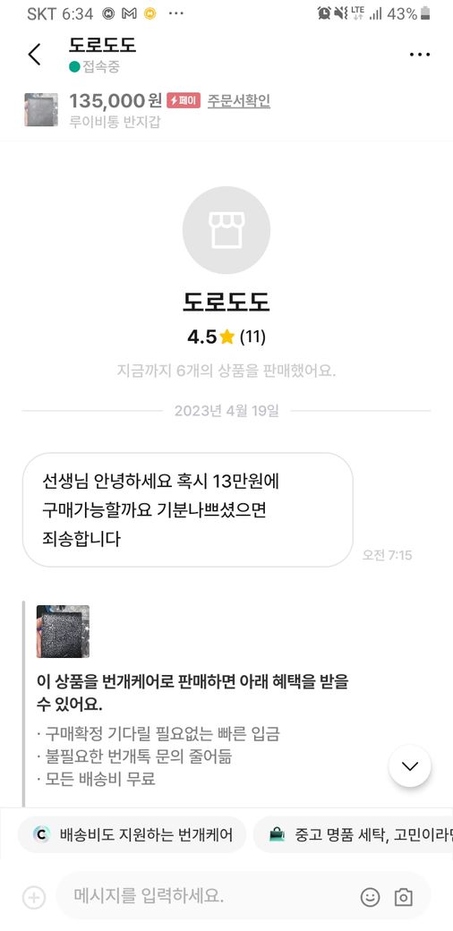 어제 중고거래 플랫폼에서 지갑을 팔았습니다.