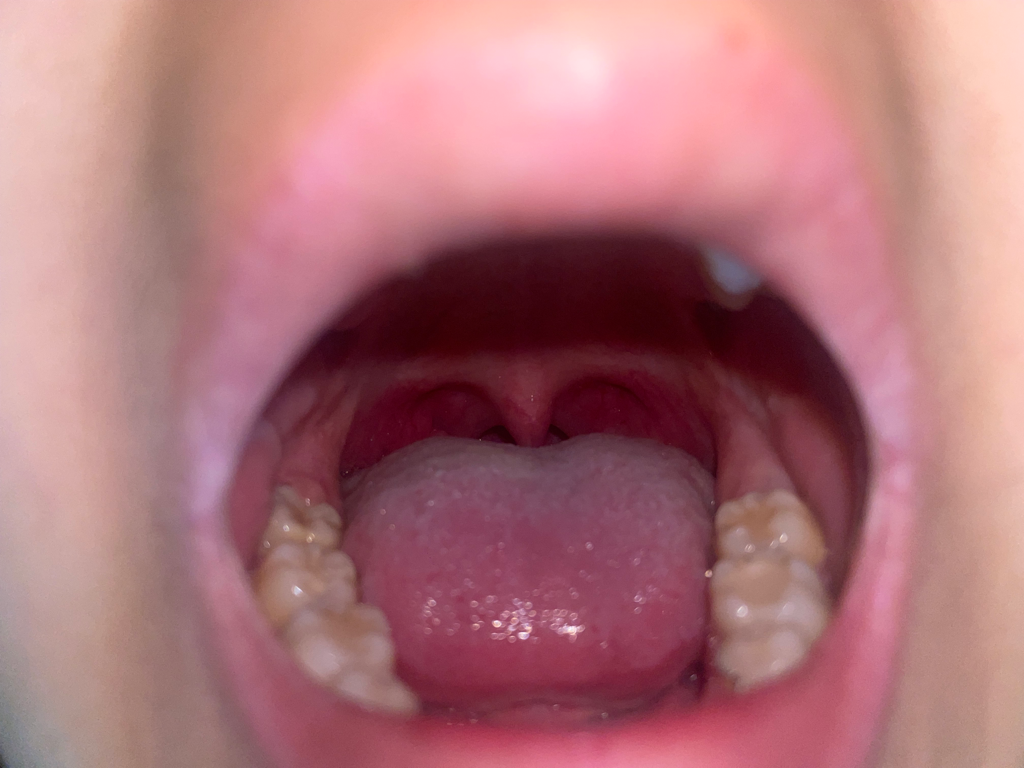 단순히 구강 안쪽만 확인하였을 때에는 편도염은 관찰되지 않는 상태로 증상이