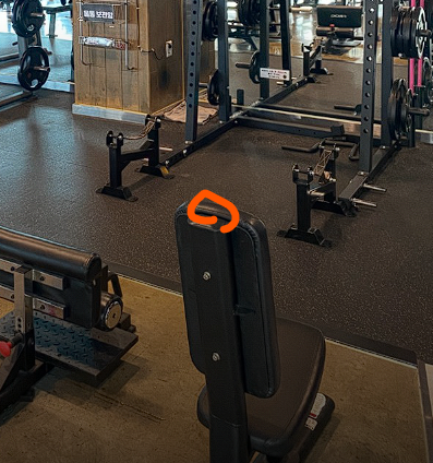 휴대폰의 위치(덤벨의자의 등받이 위)