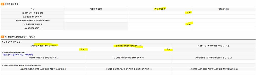 통합고용세액공제 1차공제한걸 그대로 유지할시 신고서 작성 아래처럼하고 그외엔 기재 안하면되나요??