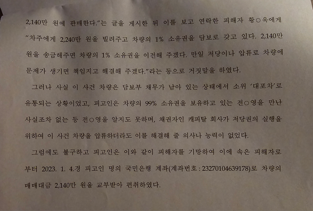 저한테 차량을 사간 사람이 차값을 물어내라고
