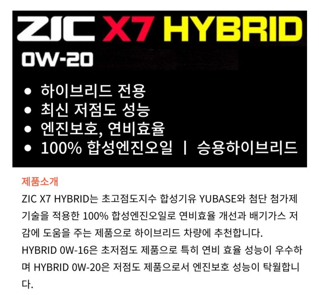 일반 가솔린 엔진오일 과 하이브리드 엔진오일