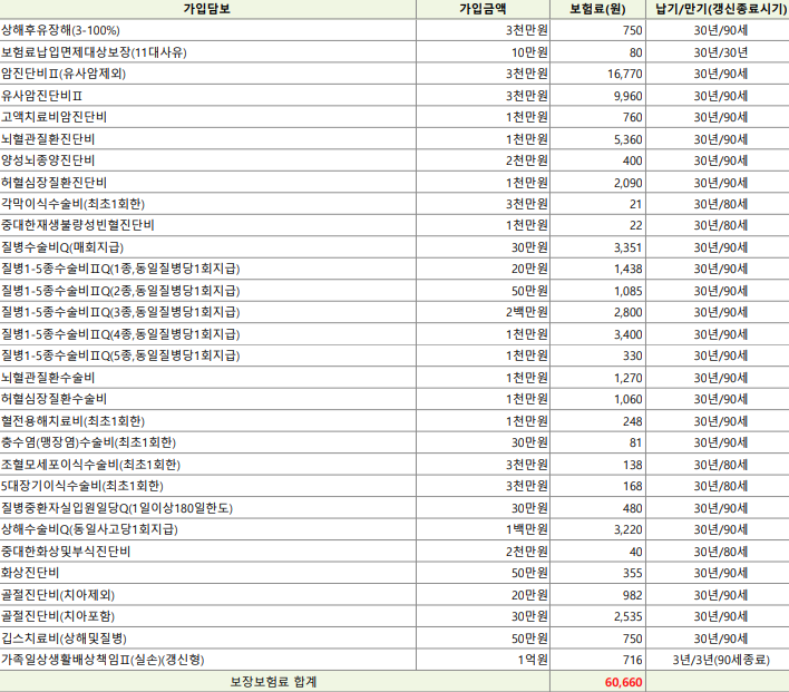 2.보장은 무난 하시지만 90세까지보장 30년 갱신상품으로 (30년 자동갱신)
