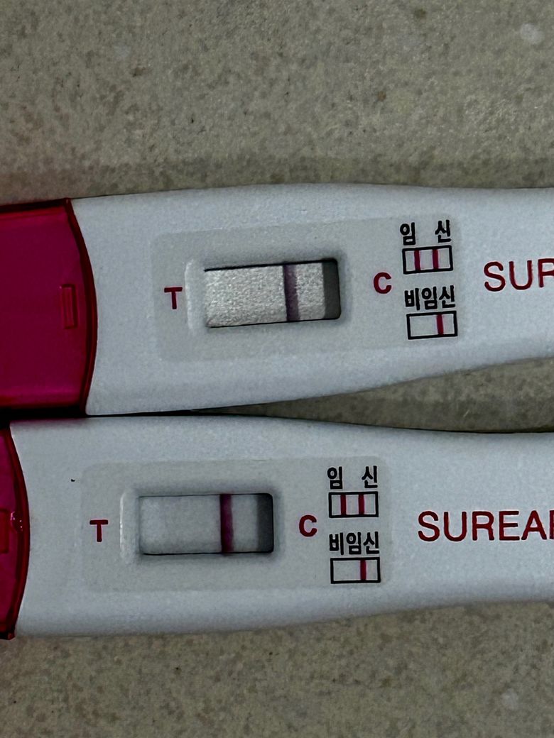 관계후 26일차 생리예정일 4일 지났고 한 임테기가 밑에 임테기인데 임신인가요 다른 전조 증상은 없었고 밑에 임테기에서 뭔가 보일듯 안보일듯한데 만약 임신이 됐다 하더라도 지금 시기라면 더 정확히 보여야하는거 아닌가요?
