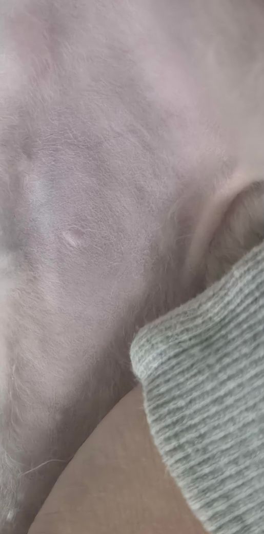 안녕하세요. 박창민 수의사입니다. 일단 사진으로는 알 수가 없습니다. 약간의 발적이 보입니다. 동물 병원에 가실 때까지 넥카라를 씌우시고 소독을 해주시면 될 거 같습니다. 감사합니다.