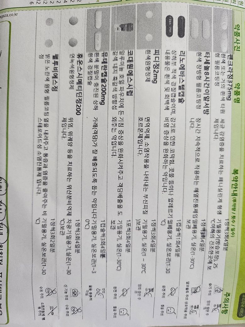 첫번째사진 약은 이번에 감기+축농증+몸살로 처방받아온 약이에요