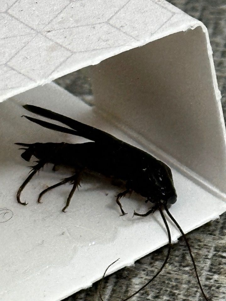 크기가 어느정도인지 알고 싶긴한데요, 날개가 달려있고 검은색 몸통과 더듬이 등을 보면 가는좀뱀잠자리와 유사해보기도 합니다.