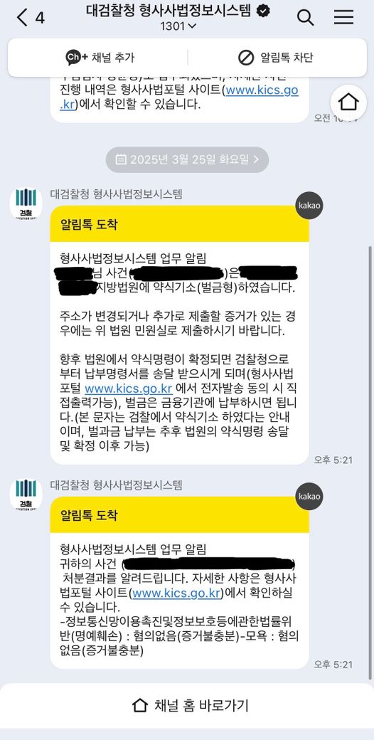 첫번째 톡에서는 지방법원에서는 벌금형으로 약식기소 하였는데 두번째 톡에서는 혐의 없음이라고 왔네요.1. 최종적으로 이 사건은 무혐의로 종결 된건가요?