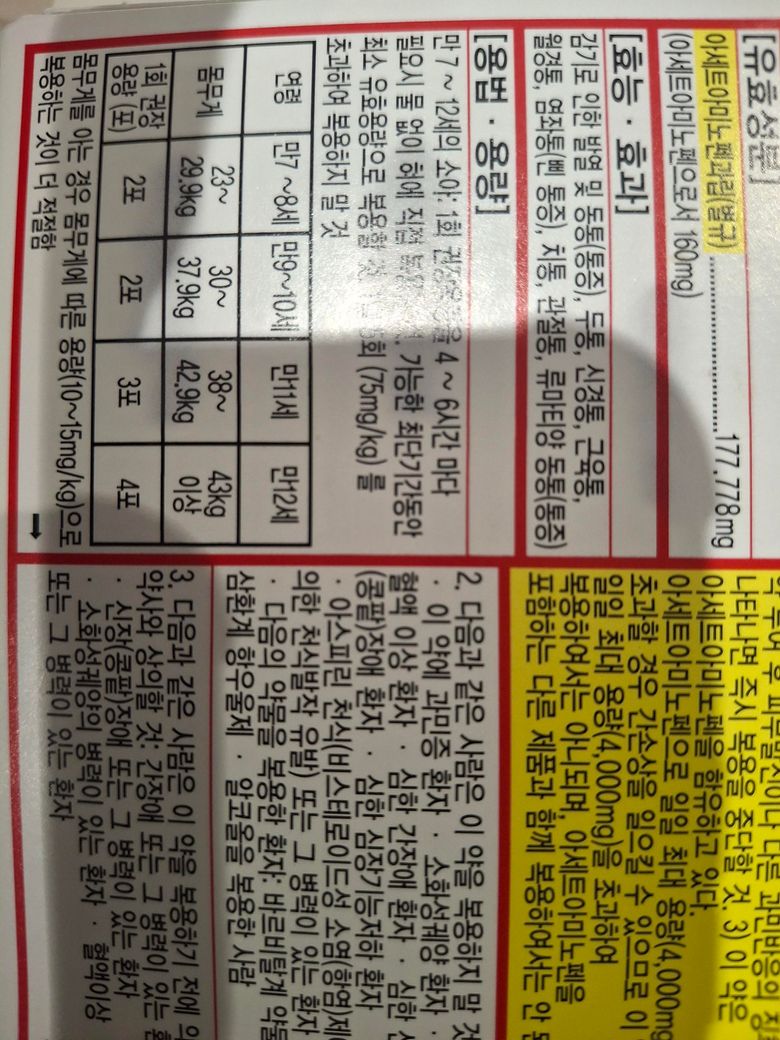 어린이 타이레놀 20키로 아이는 하나먹음될까요?