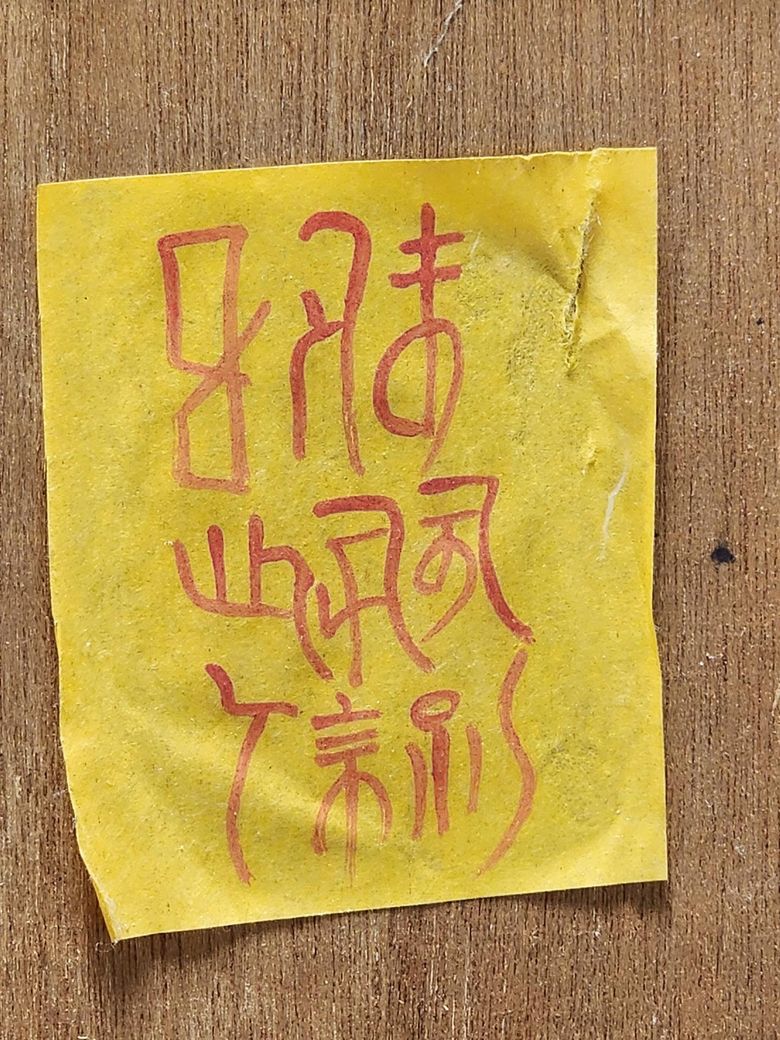 이 부적은 '매매부'라는 건데요, 부동산을 팔려고 하는데 잘 안 팔리는 경우에 빠른 매매를 위해서 붙이는 부적입니다. 떼셔도 될 것 같습니다.