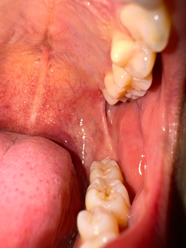 5개월 전에 충치 땜빵할게 있어서 치과갔을 때 입을 크게 벌리면서 익돌하악봉선이 갑자기 엄청 땡기면서 그 부분이 찢어지고 상처가 났었는데 거기랑 이어지는 어금니 뒤쪽 사랑니 나는 자리에 흰색 뾰루지같은게 세개정도 나있어요. 크게 아프진 않고 신경 쓰일 정도로 쓰라린 정도인데 뭘까요? 한 3일정도 됐고 익돌 하악봉선쪽에 찢어진건 5개월 됐습니다. 두달정도 전에 치과갔을 때는 구강암같은건 아니라고하시고 연고 주셔서 며칠 바르니까 완치는 아니고 거의 나았었는데 이게 또 재발한걸까요? 사진상으로 심각한 병으로 보이시나요? (참고로 저 부위에는 사랑니가 없습니다.)