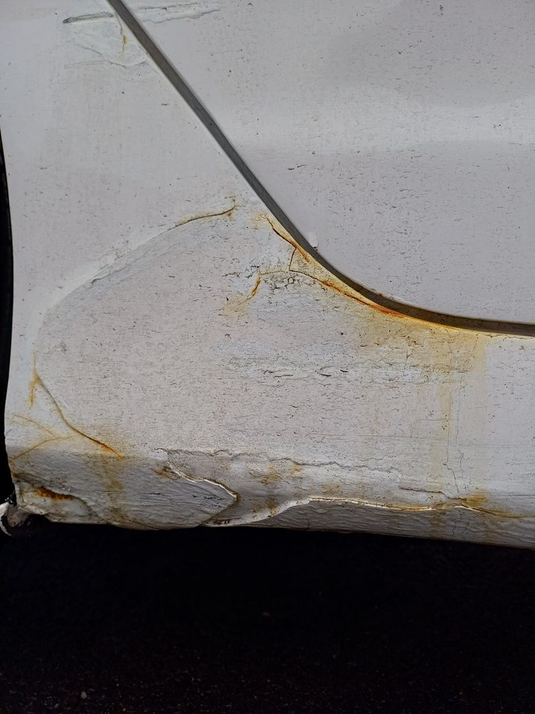 사고가 발생해서 수리가 된것 같은데... 잘 못 수리가 되어서 저렇게 된게 아닌가 합니다.