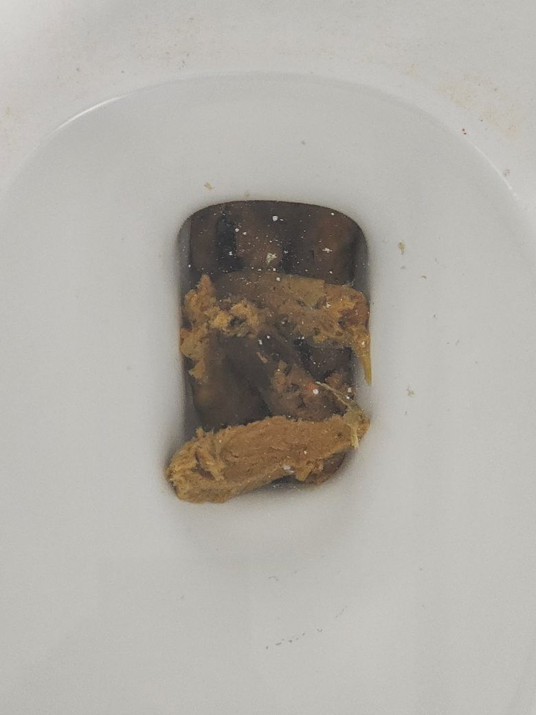 정상적인 변과 다소 무른 변이 섞인 형태로 큰 이상 소견은 보이지 않습니다.