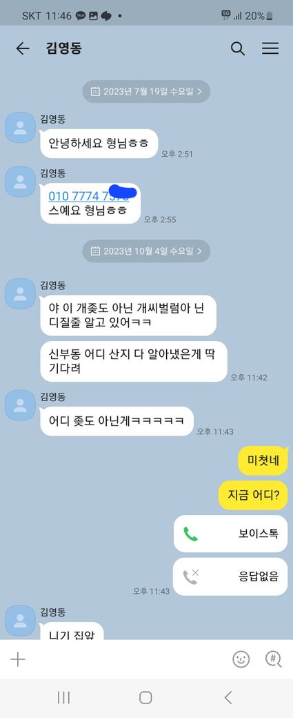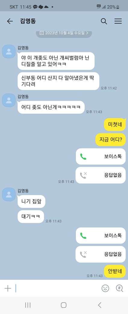 밤에 카카오톡으로 상대방이 갑자기 욕설하고 집앞이라 하는데 경창서에 신고 가능하나여?