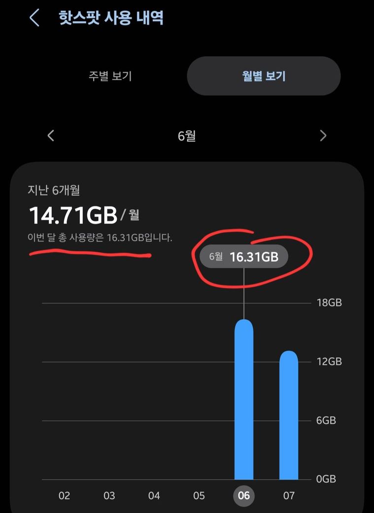제가 6월에 16.31GB정도 썼다는 뜻인거죠?