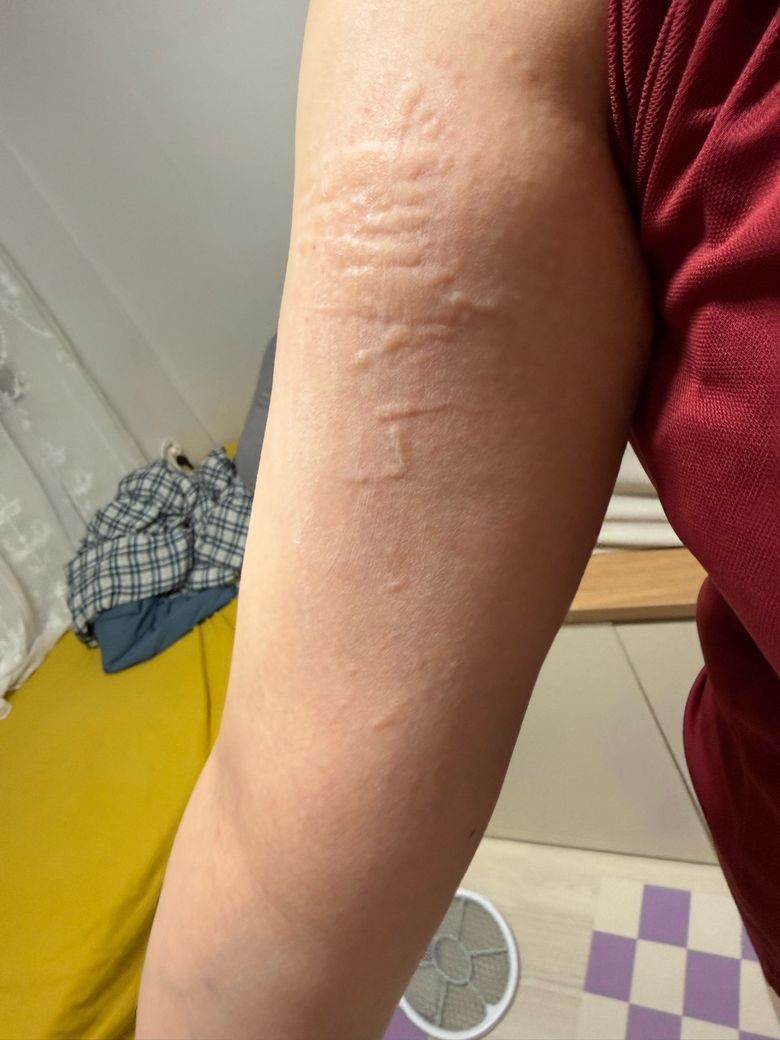어쩌다 한번씩 사진에 보시다 시피 두드러기인건지 알러지인건지….같은 오른팔에 한번씩은 겨드랑이 넘어 옆구리 부분까지 저렇게 올라오는데 도대체 뭐때문에 저러는걸까요…??