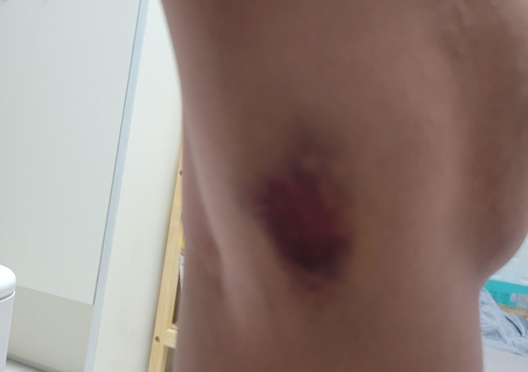 한번 누르고 난 뒤 피멍같이 변했습니다.