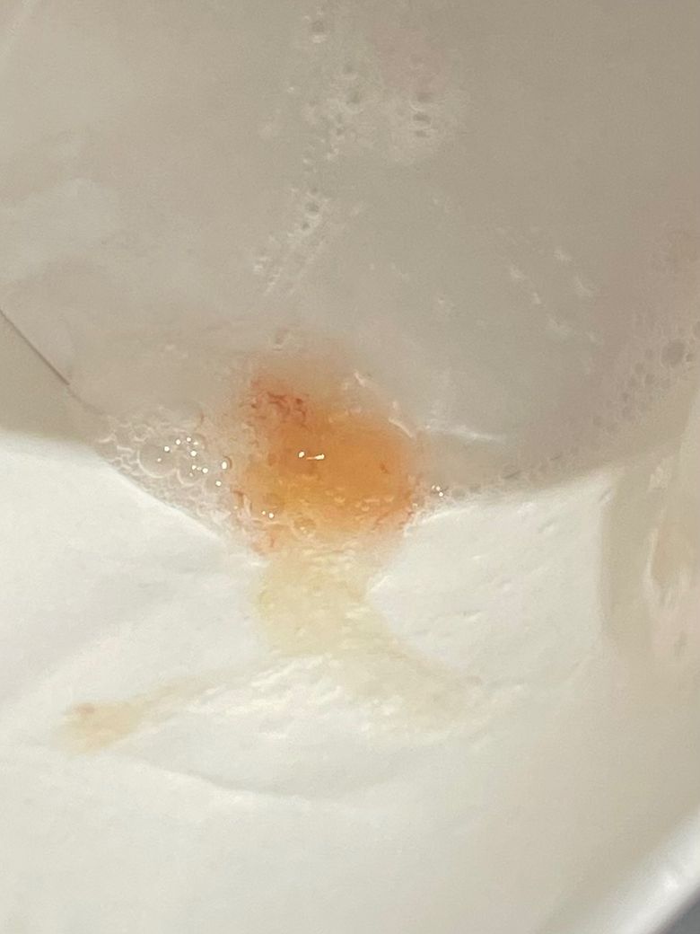 색상이 조금 붉기는 하지만 선한 빨간색은 아니므로 현재 활동성의 출혈로는 의심되지 않습니다만, 해당 증상이 반복되신다면 내과진료를 받아보시기를 권유드립니다.