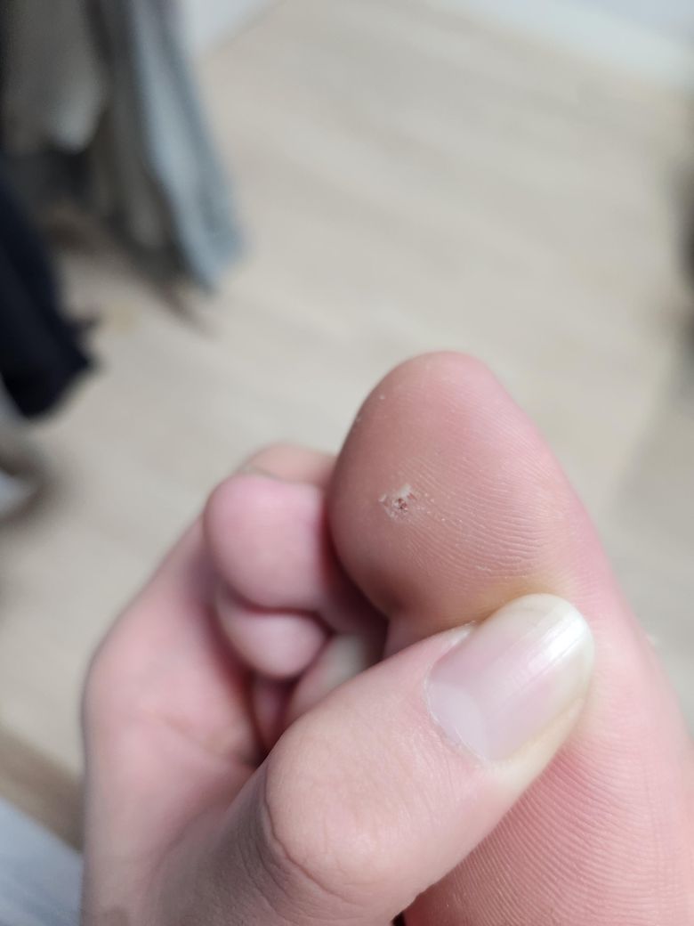 오란쪽 엄지발가락을 전에 다친건지는 기억은 안나는데 어느날 확인해보니 발에 1cm정도크기에 뭔가 난거같아요 검붉은색점같은것들이 3개정도보이네요
