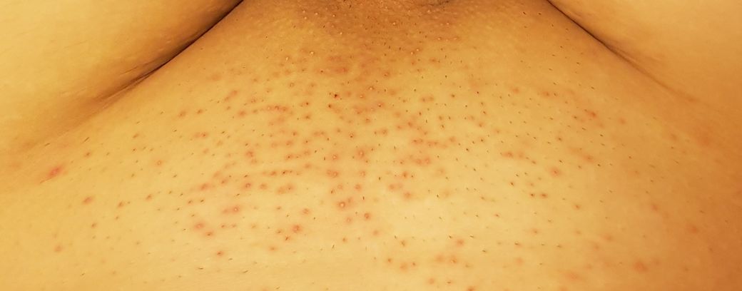 군데군데 모낭염 의심소견 또한 보이므로 우선은 가까운 피부과에 내원하시어 항생제 연고 등을 처방받으시는 것이 좋겠습니다.