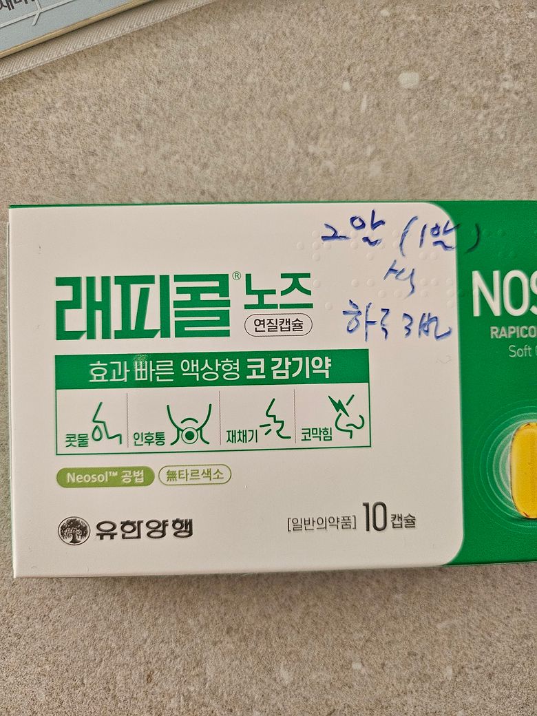 래피콜노즈연질캡슐의 성분은 아세트아미노펜,클로르페니라민,슈도에페드린인데 여기 있는 성분 중 슈도에페드린염산염은 수유부한테 권해드리지 않으므로 복용하지 않는편이 좋습니다.