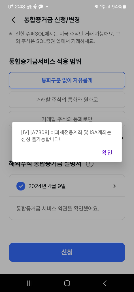 질문하신 ISA 계좌의 해외 주식 거래 제한에 대한 내용입니다.