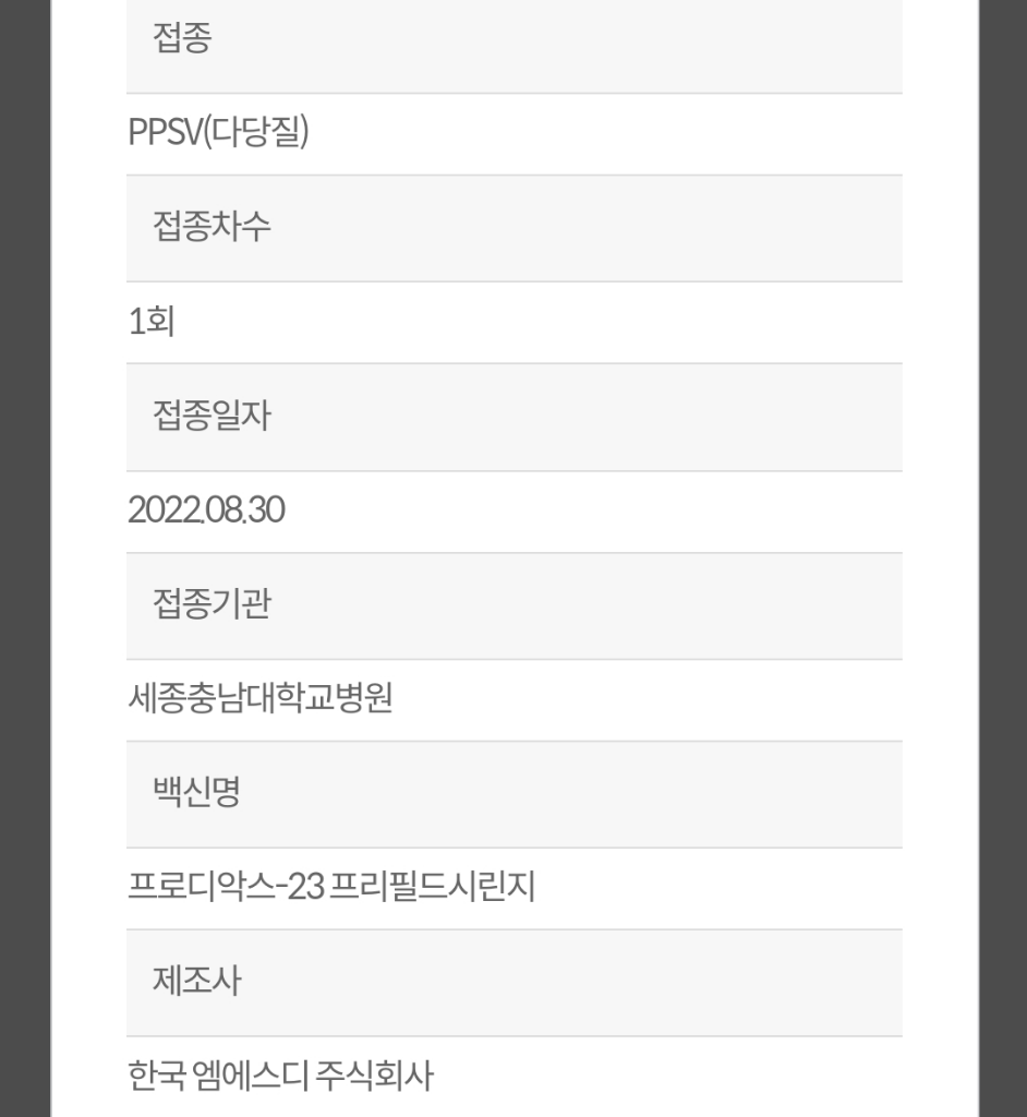 보건소나 지정 의료기관에서 무료접종하는 경우 23가 다당질 백신을 맞게되는데 13가에 비해서 더 다양한 균의 감염을 예방할 수 있다는 장점이 있지만 접종 후 1년이 지나면 항체 역가가 감소하기 시작해 5-10년 후에는 재접종이 필요하다는 단점이 있습니다.