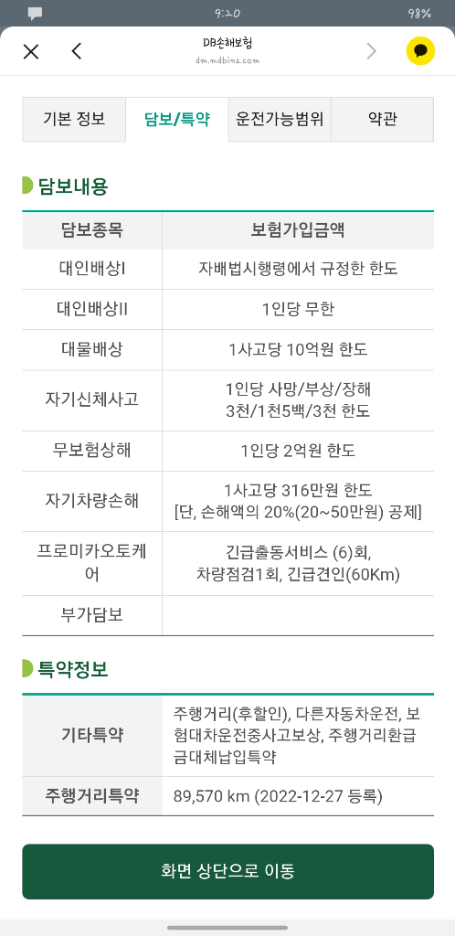 - 보험료를 절약할수 있는 특약이 많습니다. 주행거리, 블랙박스, 커넥트카 등 이러한 특약을 이용하여 보험료를 절약할수 있으니 적극적으로 알아보시는 것을 추천합니다.