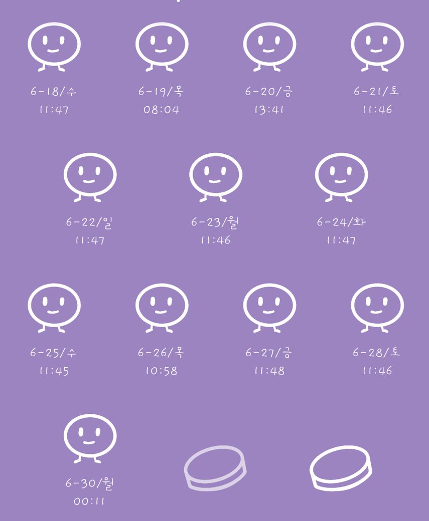 현재 12시간 정도 지나고 6/30 00:12에 1정 복용했다면, 원래 복용시간인 6/30 11:47무렵에 1정 더 복용하셨어야 맞는 용법입니다.