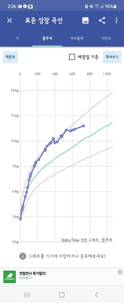성장곡선에서 매우 바람직하게 성장하고있는 상태로 보이며 혹시나 간식을 너무 많이 먹어서 그래프를 이탈하지 않는 선에서는 먹이셔도 되겠습니다.