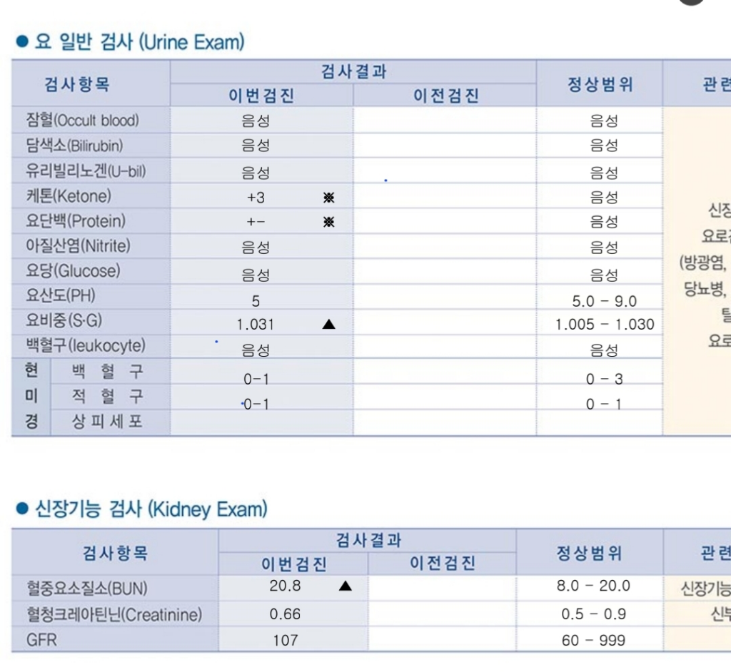 케톤은 장을 비우는 약을 드시면서 일시적 탈수증상이 왔을때 나타날수 있는 결과로 크게 우려하실 결과는 아닙니다. 수주후 안정 하신 뒤 재검해보시면 되겠습니다.