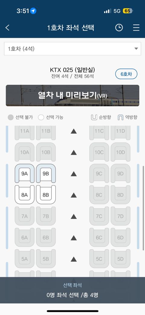 ktx 4인동반석으로 8명 타려고 하는데 4인석만 열려있습니다 왜 그럴까요?