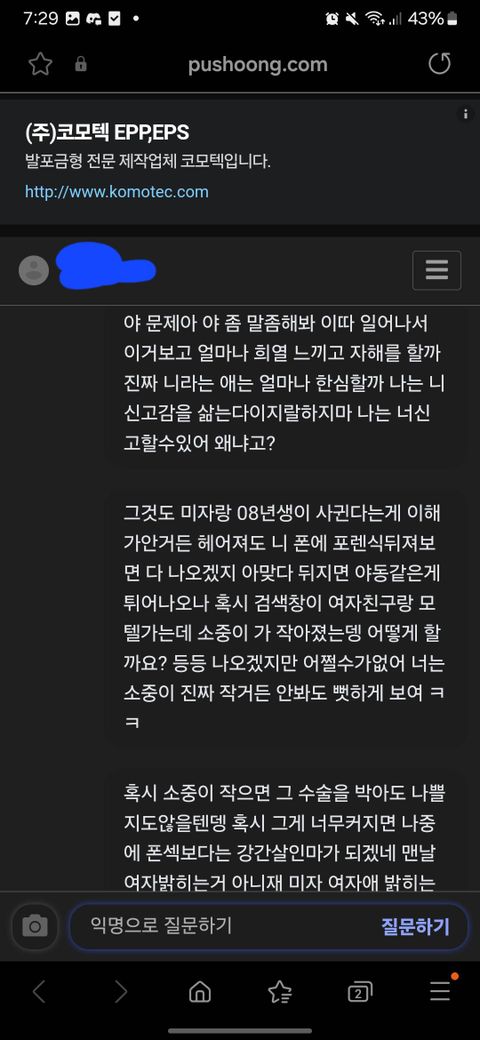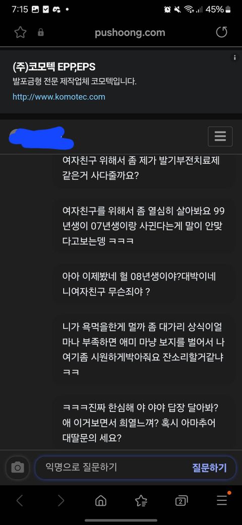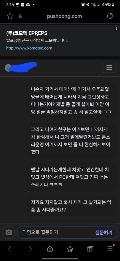 디스코드라는 프로그램내에 익명 게시판 푸슝 링크를 달았는데 이런식으로 온갖 욕과 성드립이 옵니다 처벌 가능 하다면 어떤 법과 어떻게 진행해야 하는지 부탁드립니다 물론 07년생에게 저런 말 하지 않았습니다 07년생 본인에게 물어보고 한적 없다라고한 캡쳐본도 있습니다