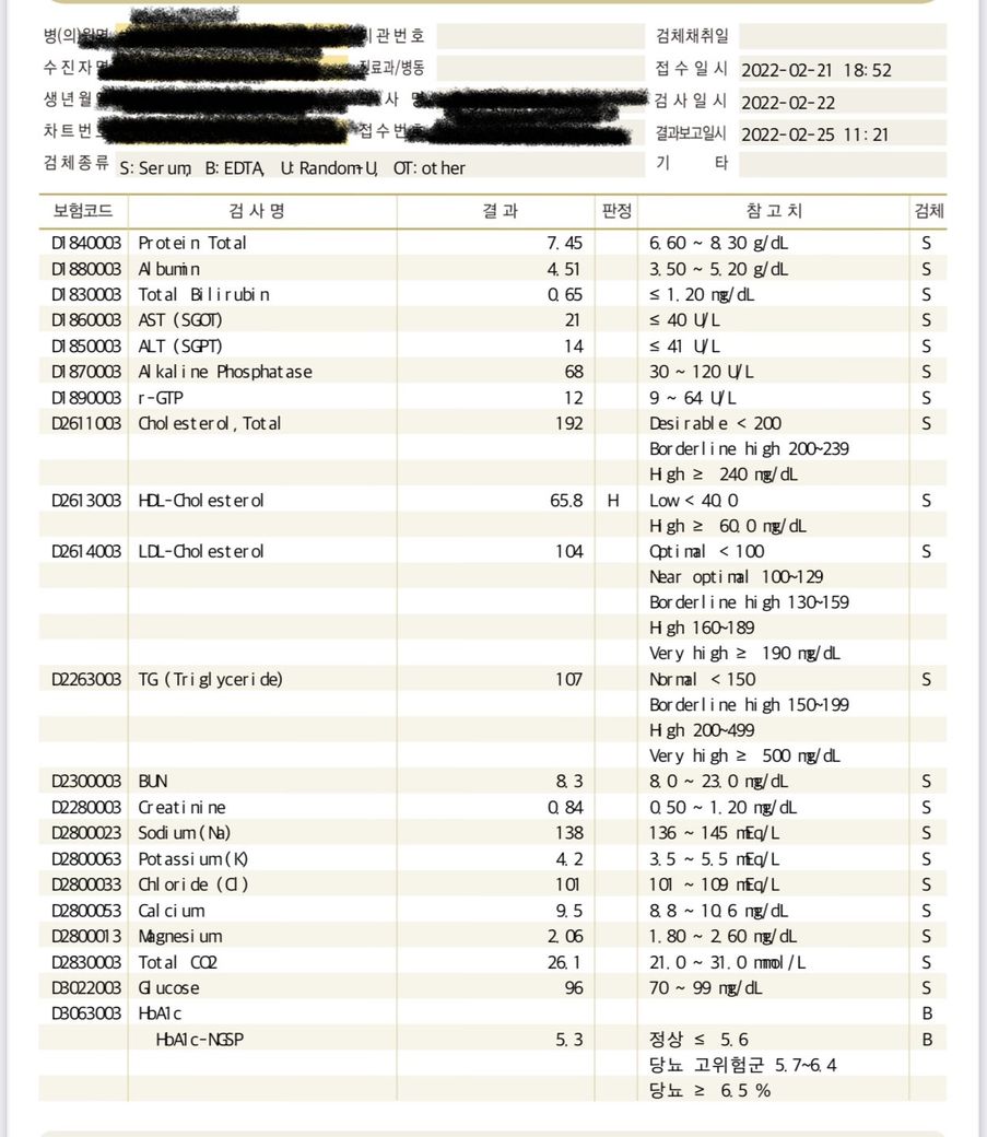 전반적으로 큰 문제는 없어 보이지만 HDL이라고 하는 혈중 콜레스테롤 수치의 관리가 필요해 보입니다. 가까운 내과에서 약물 처방 및 식생활 습관 교정으로 효과를 볼 수 있음을 알려드립니다.