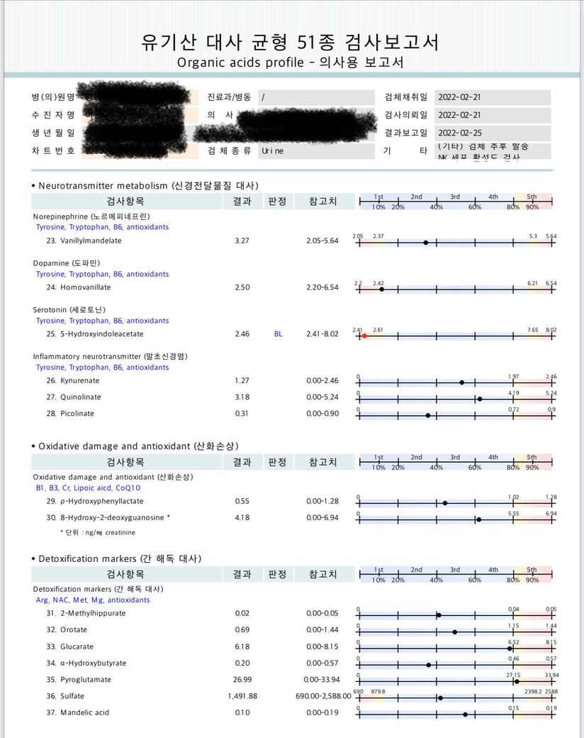 제가 무료로 검사를 받을 수 있는 기회가 생겨서 혈액검사와 소변 유기산 검사를 받았는데 어떤 수치들이 높고 낮게 나왔는데 알 수가 없네요. 제가 식습관이나 생활습관에서 어떤 성분의 영양제나 어떤 걸 챙겨먹고 멀리해야 하는지 알려주세요.