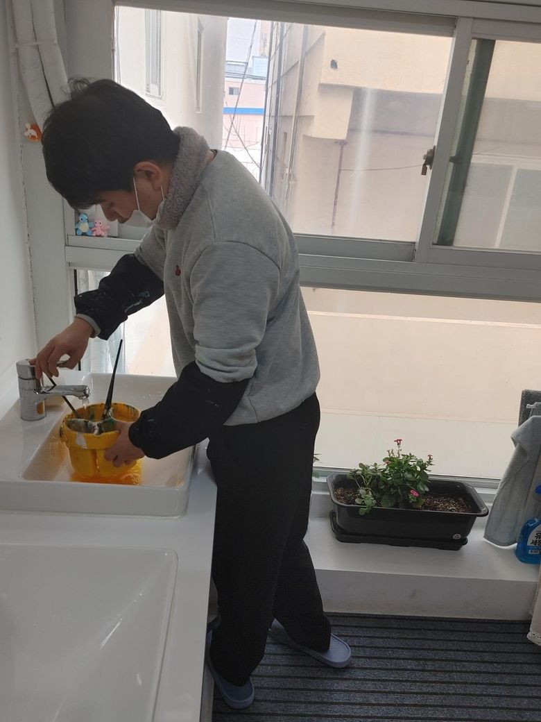 그 아저씨는 갓난이 때 열병을 앓고 치료를 못받아 지능이 멈추는 바람에 지적장애가 되었어요.