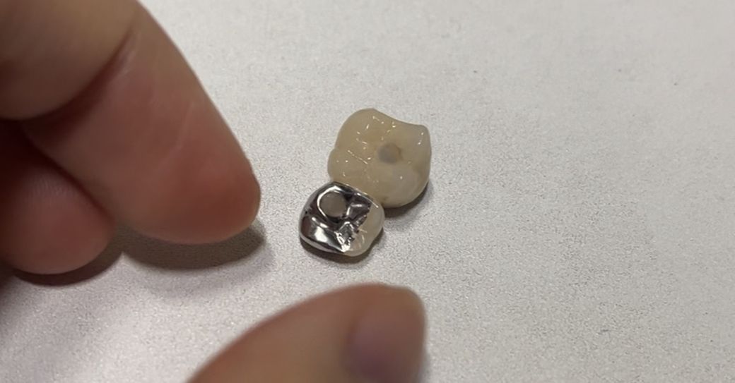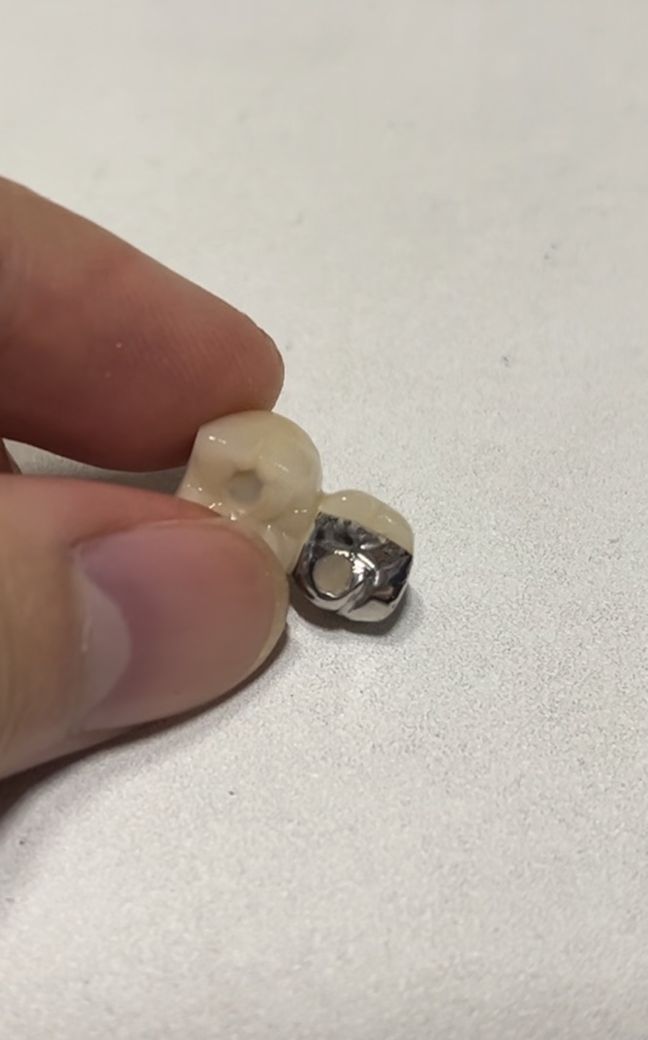 보철물 제작 후 계속깨진다면 사진처럼 메탈로 만드는 것이 깨지는 것을 방지할 수 있습니다