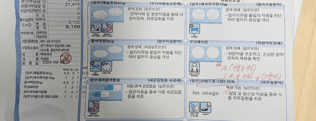 그런데 제대로 된 사용법이나 설명을 듣지 못 해 집에서 따로 찾아봤는데, 스테로이드 약이 2종이나 있는걸 발견해서 나머지 약도 전부 찾아봤어요.