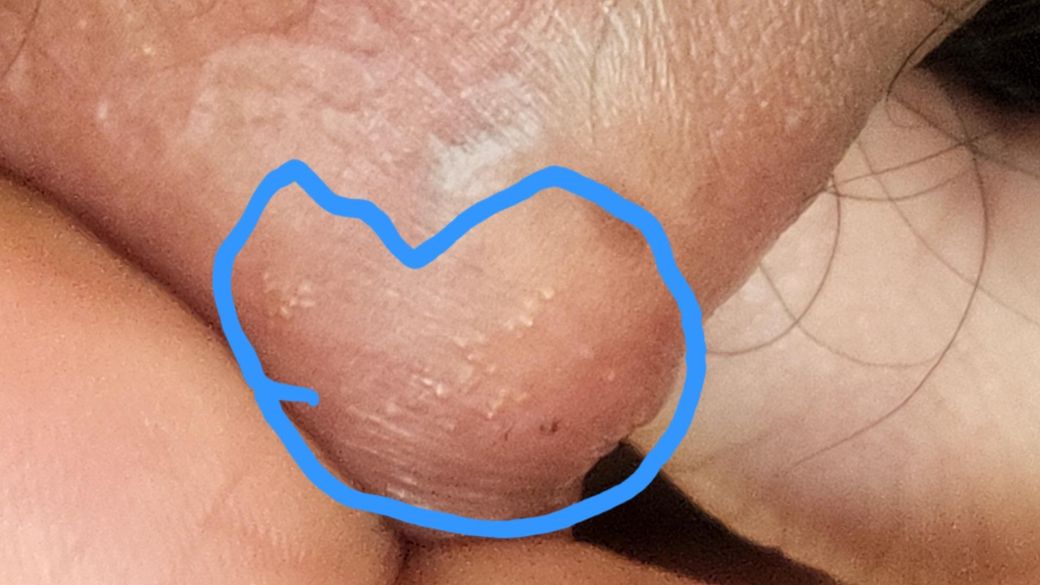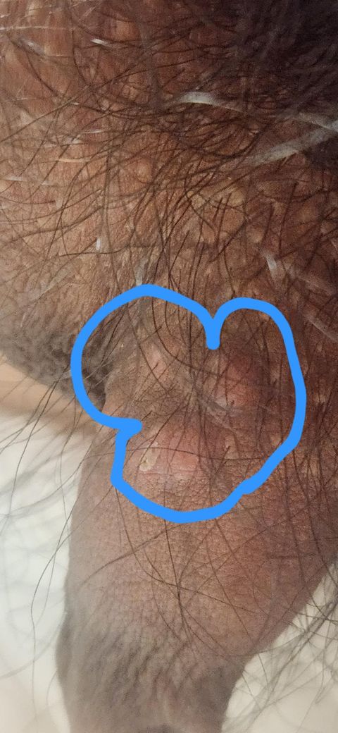 사진만 기준으로 보면 헤르페스 2형이나 매독 가능성은 높지 않아 보입니다. 전반적으로는 자극성 피부염, 모낭염, 포피(귀두 덮는 피부) 각질 변화 쪽이 더 의심됩니다.