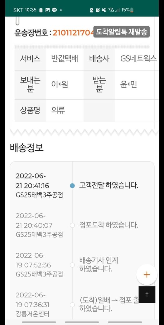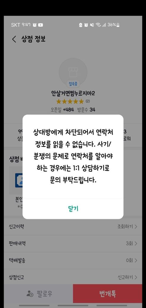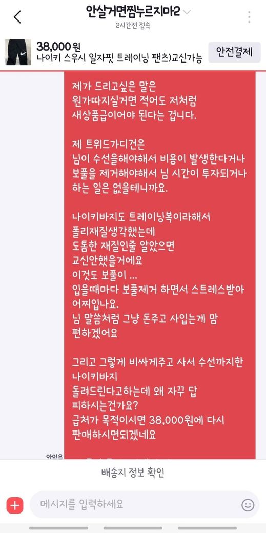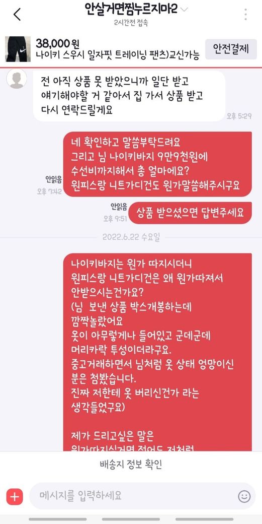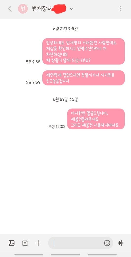운송장번호조회해보니 상품수령확인이 되어, 제가 먼저 연락드렸으나 저를 차단해서 번개장터로는 연락을 할 수 없었습니다.
