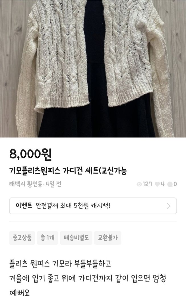 저는 제 상품 상태를 판매글에 사진으로 표시했습니다.