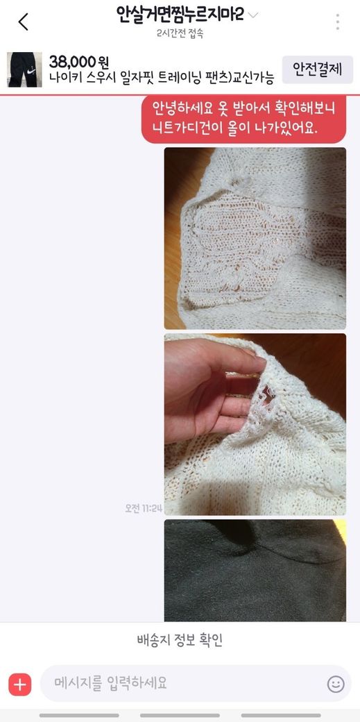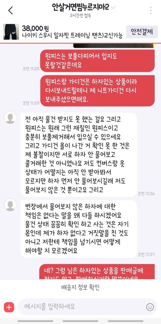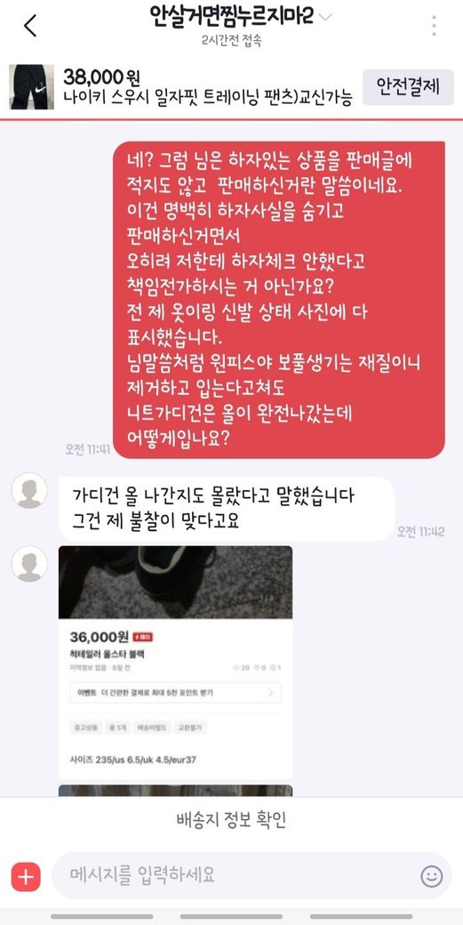 그러나 제가 받은 옷은 완전 헌옷수거함 넣어야할 정도의 상태였기에 하자문의를 드린거였고, 이에 대해 모르쇠로 일괄하며