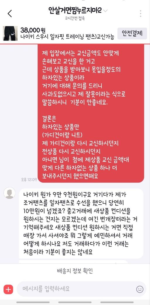 번개장터에서 상품 교환거래를 하였습니다.