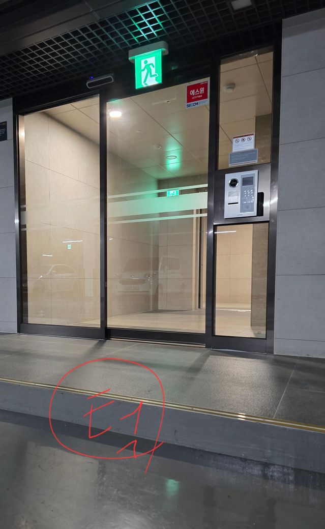 얼마전 어머님께서 이웃 아파트 지하주차장 내 공동 현관을 통해 안으로 들어가시려다가