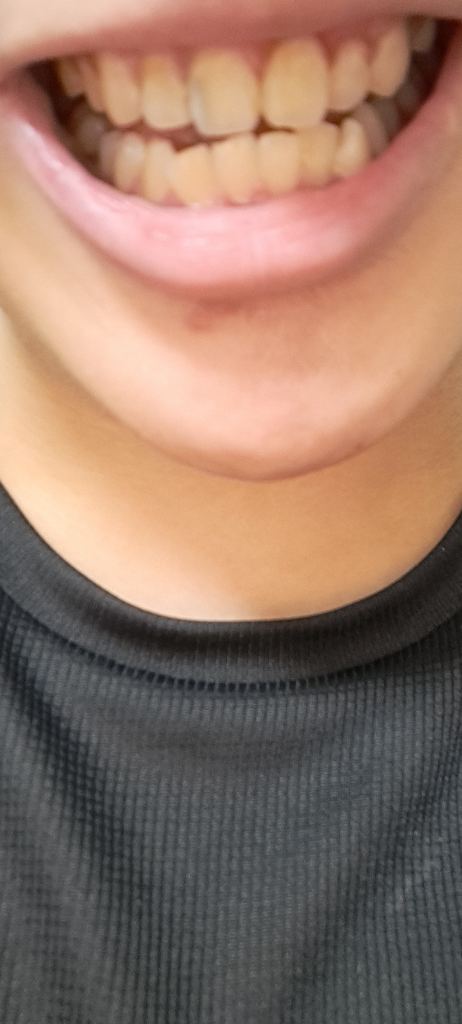사진상으로 봐서 앞니에 검은줄이 충치인가요? 아직 통증은 없어요 그냥 음식때문에 생긴건지 잘 모르겠오소 질문드립니다. 감사합니다.
